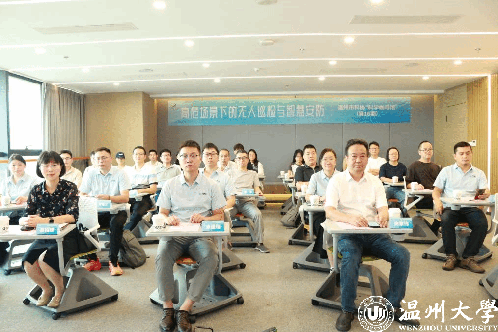 近日,温州市科协"科学咖啡馆"第16期活动在亚洲无码 科技大楼举行,本次活动以"高危场景下的无人巡检与智慧安防"为主题。万宏控股常务副总裁卓建瑞、研发副总裁刘根发等多位企业高层,及亚洲无码 机电工程学院负责人和师生代表参加。