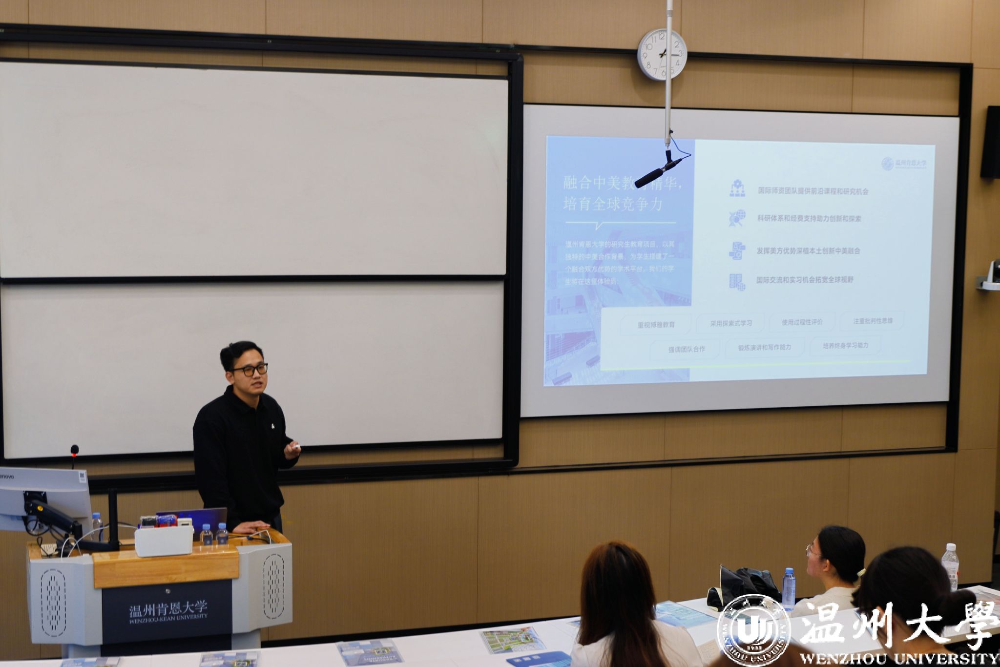 来自温州肯恩大学的研究生学生代表结合自身备考经历、高效学习方法以及校园成长故事,以“同龄人视角”生动传递“脚踏实地、互助共进”的学习态度,为在场同学提供了可借鉴的学业规划范本。