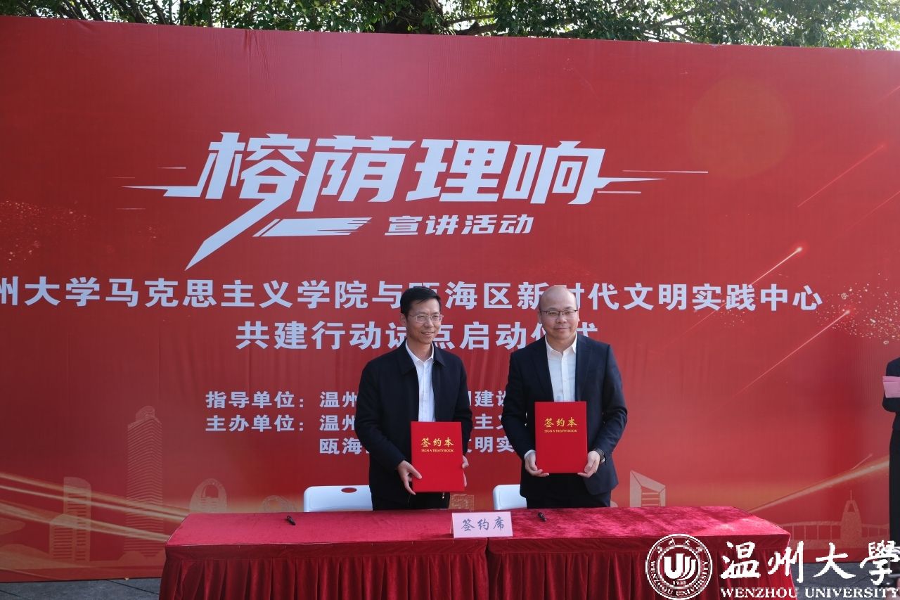 当天活动还举行亚洲无码 马克思主义学院和瓯海区新时代文明实践中心共建行动试点启动仪式,“亚洲无码 马克思主义学院和瓯海新时代文明实践中心共建基地”揭牌,签署《共建行动战略合作协议》,为瓯海区新时代文明实践宣讲团、亚洲无码 新时代文明实践博士宣讲团颁发聘书等。