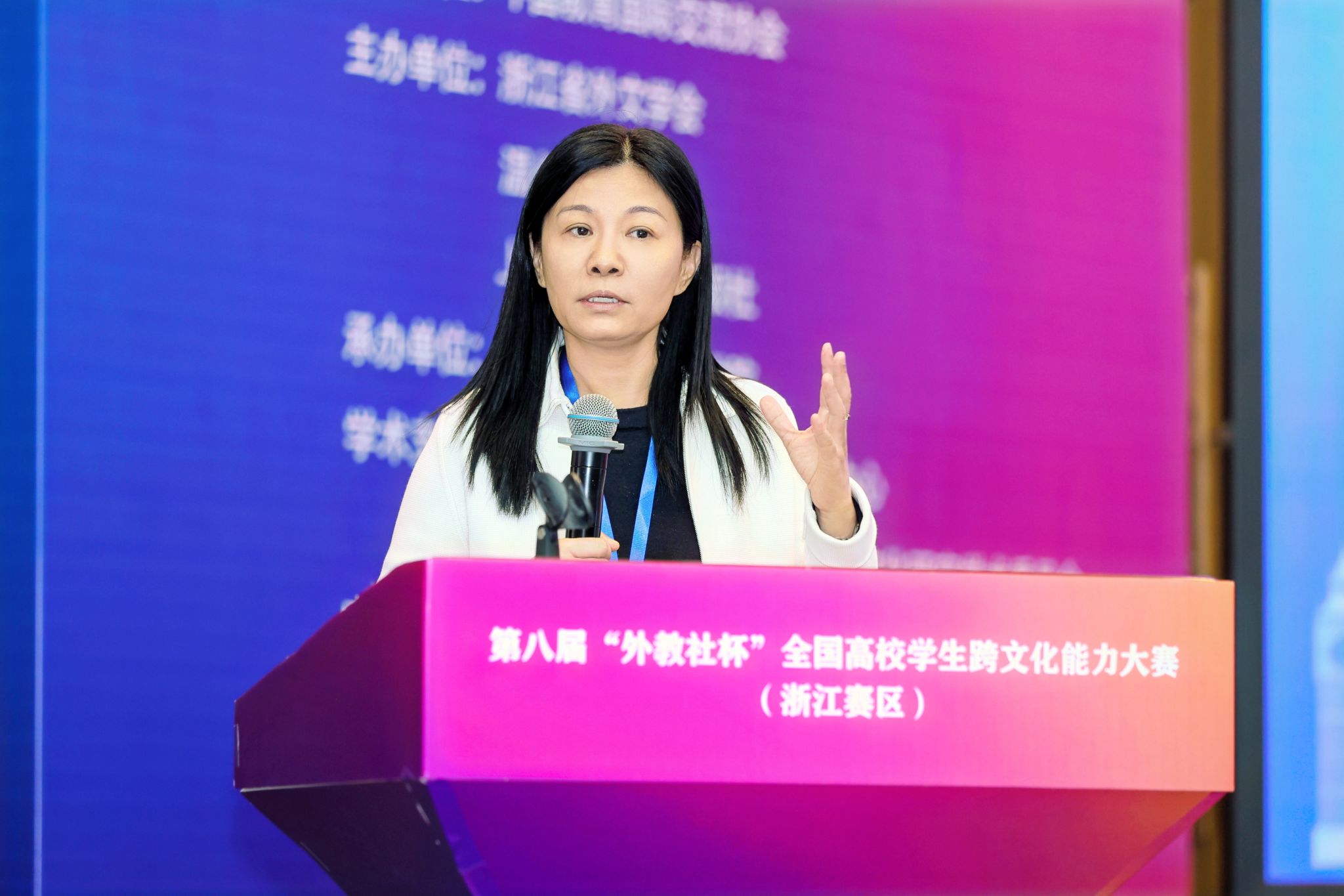 浙江省外文学会会长周敏教授指出,在跨文化能力日益重要的今天,大学生应当成为文化交流的使者。她期待通过这一赛事平台,展现浙江省作为现代化先行省在跨文化人才培养方面的成果。上海外语教育出版社社长丁毅编审强调,跨文化交流是文明互鉴的重要桥梁,希望青年学子不断提升跨文化素养,在多元文明交融中书写精彩篇章。