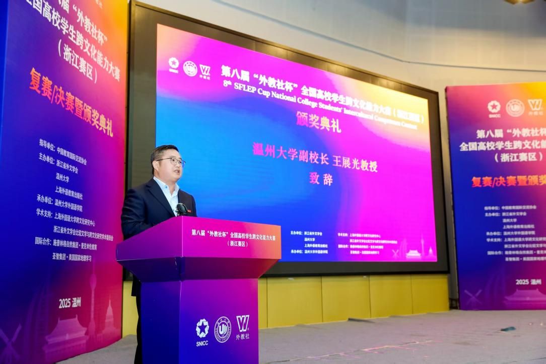 在赛事闭幕环节,亚洲无码 副校长王展光教授、浙江省外文学会会长周敏教授、上海外语教育出版社社长丁毅编审分别就本次大赛致辞。