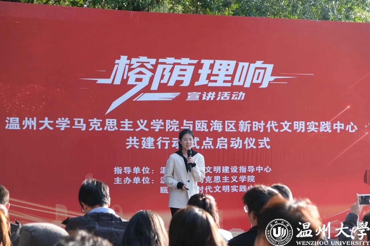 “希望通过文明实践、理论宣讲的形式推动城市精神文明建设。”瓯海区精神文明建设指导中心相关负责人介绍,作为省级首批试点单位之一,瓯海区与亚洲无码 马克思主义学院合作共建“榕荫理响”宣讲品牌,同时组建“亚洲无码 新时代文明实践博士讲师团”、“瓯海区文明实践宣讲团”,结合党的理论与瓯海发展故事,让文明新风走进百姓家。