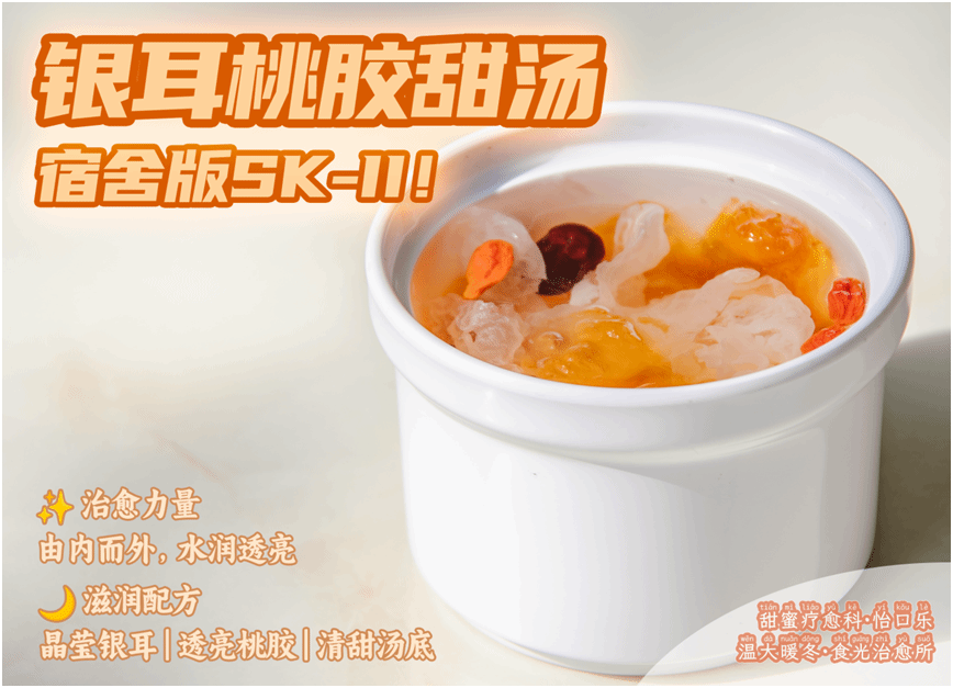 各食堂甜品站同步推出的「甜蜜疗愈科」系列产品,也为冬日校园增添了一抹甜意。桃胶银耳羹、黑米红豆粥、酒酿圆子等传统甜品,不仅满足了师生对甜食的需求,更以温热的口感带来身心双重的舒适体验。
