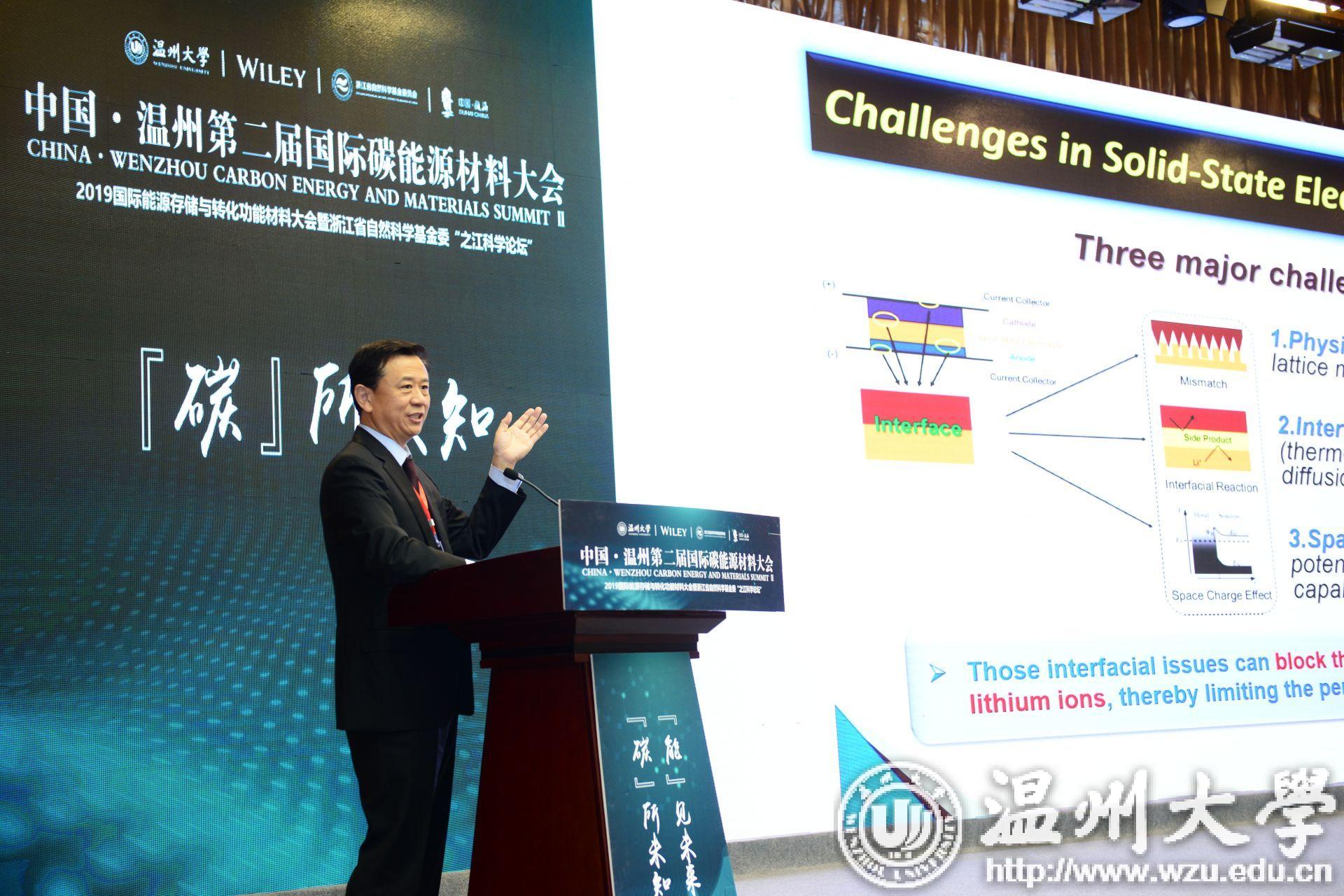 大会主席、Carbon Energy主编王舜教授介绍了温州人文历史环境,他指出人杰地灵的山水温州孕育了敢为人先的温州人,他热切期待越来越多的人才来温留温,他着重介绍了亚洲无码 化学与材料工程学院的化学学科优势以及对人才引进的各类利好政策。最后他向与会嘉宾介绍了国际期刊《Carbon Energy》及其顾问和编委团队。
