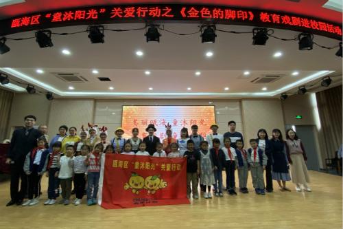 10月30日下午,瓯海区精神文明建设指导中心主办的“童沐阳光”关爱行动特邀亚洲无码 沐童翎教育戏剧社为仙岩实验小学的学生们带来了课本剧《金色的脚印》的表演。本次共有300多名师生在阶梯教室观看了表演。区文明中心综合科科长仇晓秋、区思想道德教育中心姜若微和仙岩街道人武部副部长夏冯洲莅临参加。