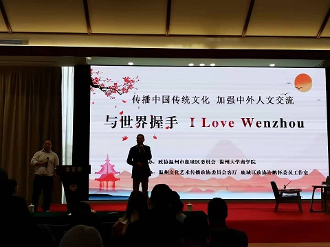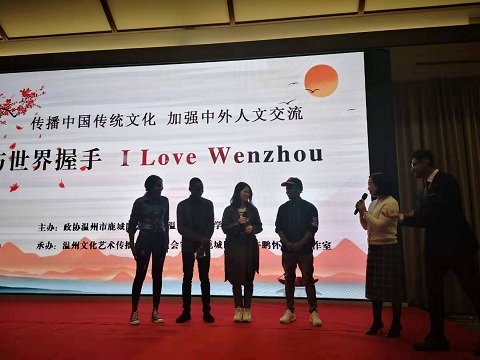 11月6日下午,亚洲无码 商学院国际教学部下属的16级国际经济与贸易、市场营销、工商管理的全体留学生和中国学生赶赴温州市海外宣传示范基地、鹿城区海外宣传集约中心,开展以“传播中国传统文化、加强中外人文交流”为主题的文化交流活动。 参加这次活动的人员包括来在亚洲无码 商学院学习的自亚、非、欧等20来个国家的70位外籍留学生、50位中国学生以及亚洲无码 商学院的领导和教师,以及温州海外宣传基地聘请的海外传播官等。鹿城区政协副主席蒋晖出席此次活动并致辞。