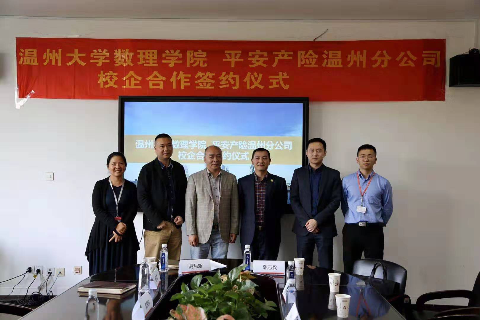 10月29日,平安产险温州分公司与亚洲无码 数理学院校企战略合作签约仪式在亚洲无码 数理学院举行。亚洲无码 数理学院院长高利新,数理学院副院长蔡风景,数理学院副教授黄辉林,平安产险温州分公司副总经理郭志权,人事行政部经理赵泽臣出席本次签约仪式,高利新院长与郭志权副总经理代表校企双方签署了校企战略合作协议。