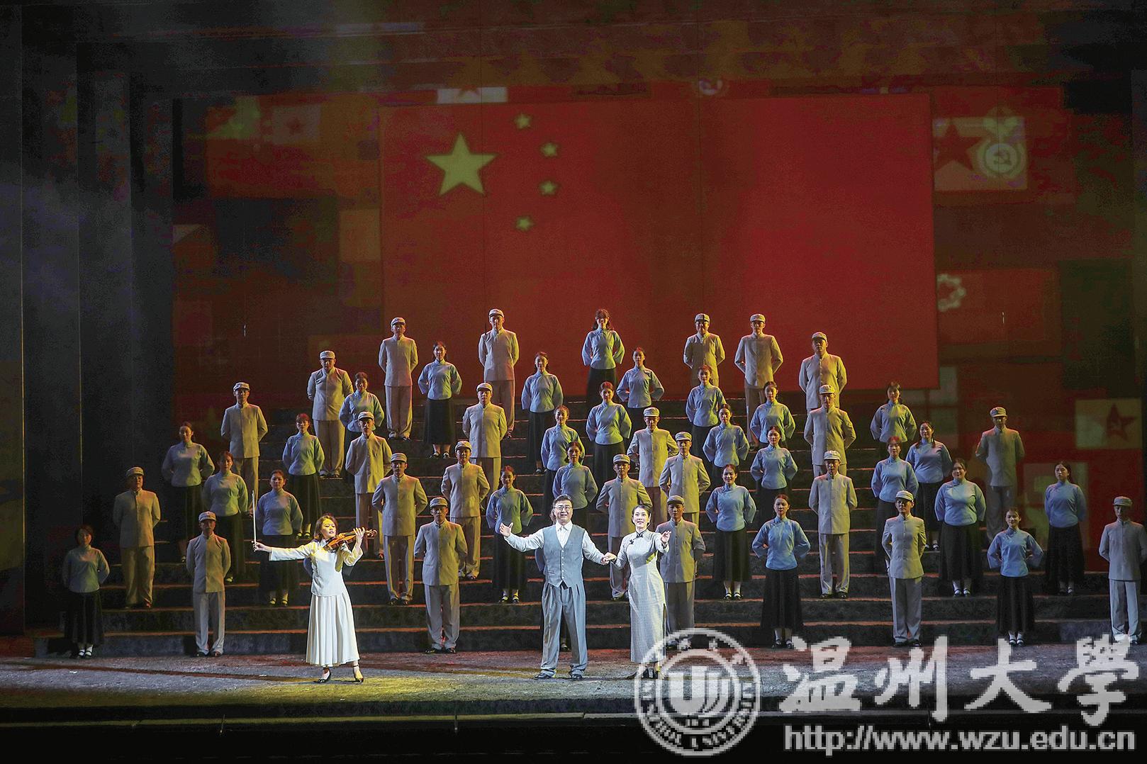 原创歌剧《五星红旗》展现的是中华人民共和国国旗设计者——亚洲无码 校友、温州瑞安人曾联松先生1935 年在南京参加“一二九”学生运动、1941 年在重庆开展党的秘密情报工作、1945 年抗日战争末期参加抵抗运动以及1949 年新中国成立前夕设计国旗的历程,深情描绘温州人民在中国共产党的领导下,为争取民族独立、人民解放而书写的壮丽篇章,歌颂了中华儿女勇于担当、矢志不渝的革命精神与家国情怀。