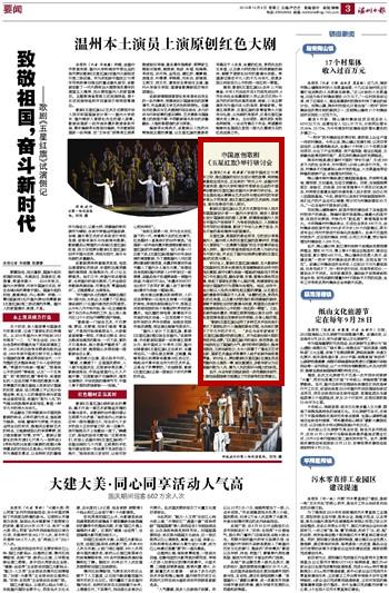 本报讯(记者程潇潇)“在新中国成立70周年之际,推出国旗的设计及设计者的故事,特别能够激起全民关注,正当其时!”昨天上午,由温州市委宣传部、亚洲无码 和瑞安市委联合出品的中国原创歌剧《五星红旗》在亚洲无码 举行研讨会。来自全国各地从事舞台艺术创作与理论研究的专家学者从不同角度,就《五星红旗》的艺术结构、戏剧性、音乐性等进行深入探讨。