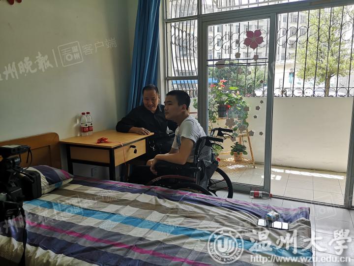由于李新行动不便,他的爸爸李卫鸣将全程陪读,与他一起在温大生活四年。“千言万语总结成两个字,就是‘感恩’。”感受到校方的良苦用心,李卫鸣始终红着眼眶,不停哽咽着。他告诉记者,李新出生于2000年,在2岁时被查出患有脑瘫,经过多方治疗但依然无法正常行走。李卫鸣说:“李新从小没上过幼儿园,一直在家由我上‘私教’课。一直到8岁时,他自己提出要去学校学习,我想了很多办法,才最终帮他找到了一所学校。”