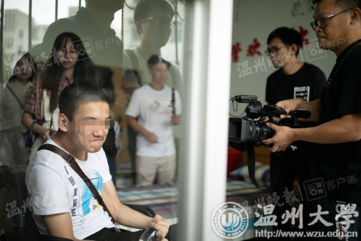 4日上午,李新一家由友人驱车,从绍兴赶到了温州。踏入“私人定制”的宿舍,看到温大为自己提供的贴心服务,李新大呼感动:“这跟我想象的大学宿舍不太一样,我本来以为是很普通的宿舍,没想到竟然跟家里差不多,很温馨的感觉。特别惊喜,特别感动!”虽然坐在轮椅上,由他人推着前行,但李新的语言表达流畅,可与记者进行正常的交流对话,也可用手简单操作手机。