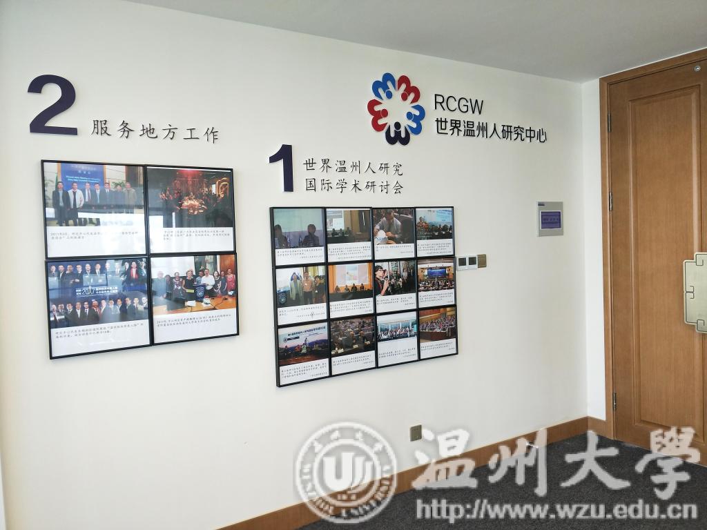 一进入世界温州人研究中心,墙上的许多照片吸引了记者的注意。照片墙分为两个主题,第一个主题是世界温州人研究国际学术讨论会,里面是从2010年以来举办的各届世界温州人研究国际学术讨论会的盛况。照片墙的第二个主题是服务地方工作,以及世界温州人研究中心的研究员们配合温州市政府参与海内外温州人学术研究活动情况。世界温州人研究中心秘书长、亚洲无码 商学院教授张一力博士向记者一一讲述照片的故事。