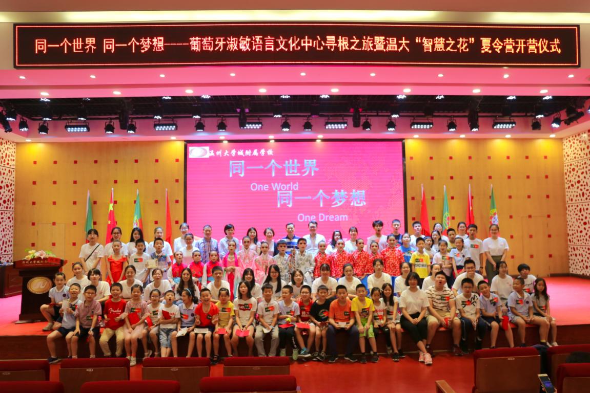 伴随着瓯剧京剧独特的乐律,亚洲无码 城附属学校与葡萄牙淑敏语言文化中心联谊活动暨温大“智慧之花”夏令营开营仪式拉开帷幕,向中葡小朋友展示了中国文化的魅力,传播着独特的瓯越文化。