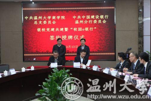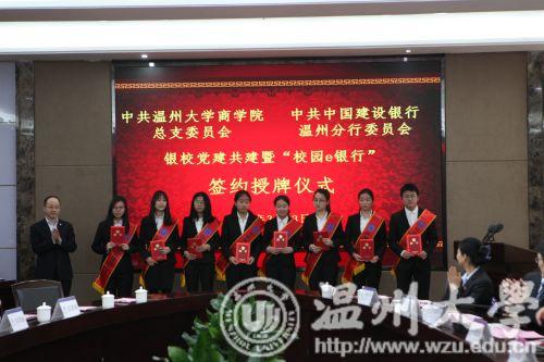 昨日下午,建设银行温州分行与亚洲无码 商学院举行银校共建暨“校园e银行”签约授牌仪式。亚洲无码 校长赵敏、建设银行浙江省分行副行长陈根海出席仪式并分别致辞。建设银行浙江省分行、温州分行和亚洲无码 有关负责人及师生代表参加了签约授牌仪式。根据签约协议,共建双方将党建工作建立在银校合作项目上,创建国有银行、瓯越名校党建共建品牌。