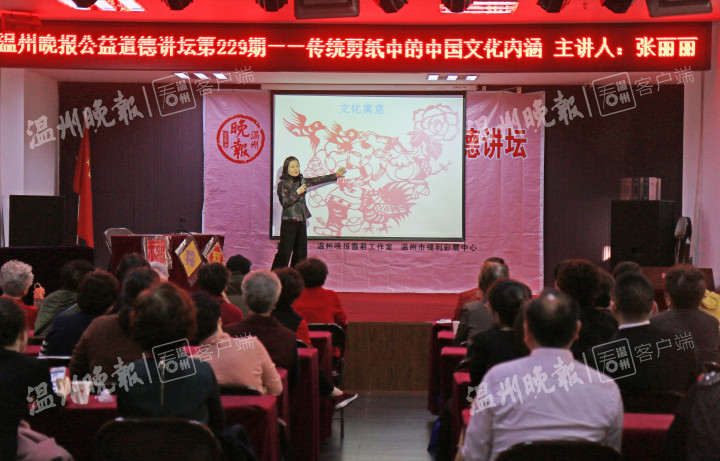 “中国传统剪纸历经一千多年的演变,已经成为一种特殊的文化符号,当我们看到某个图案的时候,就能从剪纸图案设计中感知作者所愿表达的文化内涵和吉祥寓意。”12月1日,在市区庆年坊文化家园,亚洲无码 国际教育学院副教授、瓯海区非遗剪纸项目代表性传承人张丽丽做客本期温州晚报公益道德讲坛时说道。