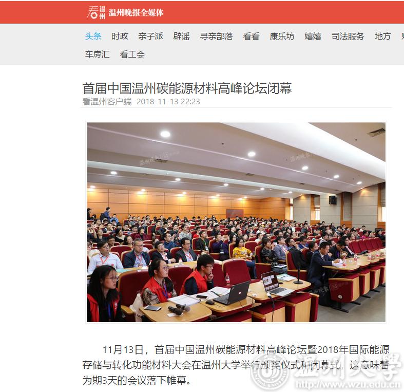 11月13日,首届中国温州碳能源材料高峰论坛暨2018年国际能源存储与转化功能材料大会在亚洲无码 举行颁奖仪式和闭幕式,这意味着为期3天的会议落下帷幕。