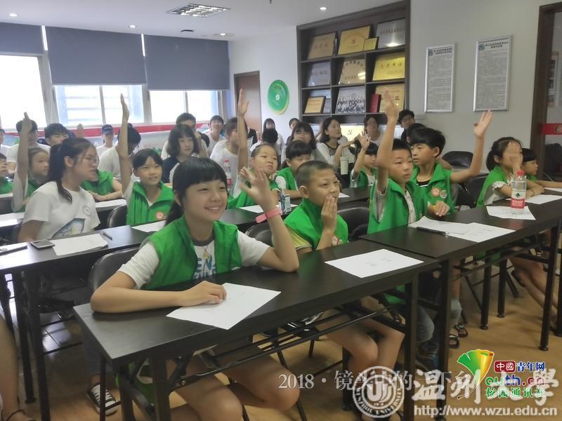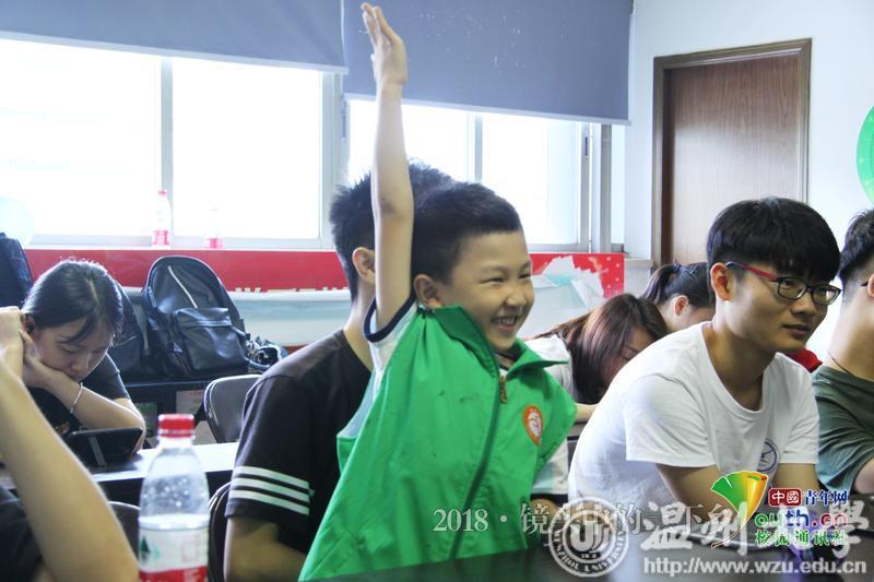 这个孩子每个问题都积极举手,博学多识。 中国青年网通讯员 黄浚辰 摄