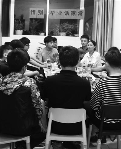 “今后工作中碰到什么烦心事,跟老师说说”……浙江工商职业技术学院三号公寓楼辅导员邱春香把楼内的毕业生聚集在一起,惜别话家常。(本报通讯员 姚敏明 摄)