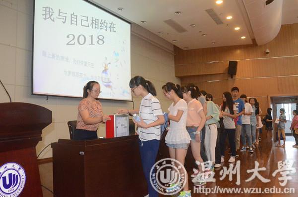 据悉,在2014年9月的开学典礼上,温大生环学院让每一个刚踏进大学校园的新生写下了给自己四年后的一封信。其中,信件的内容由学生自己确定,写下对未来自己的愿望、憧憬和祝福等。信件收集后,学院把信件放在青春信箱进行“时光慢递”,四年后才能打开信件,连相关负责老师都不知道学生们写了些什么内容。