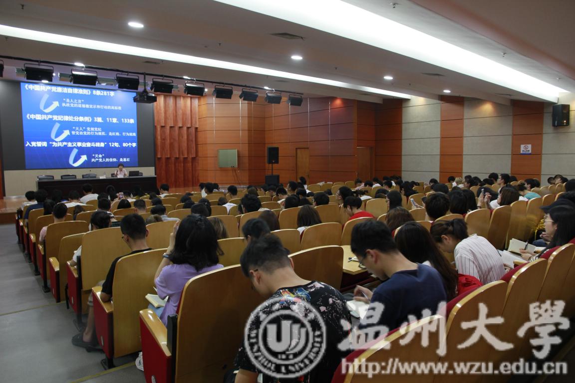 2018年6月20日下午,亚洲无码 步青学区一百多位毕业生党员齐聚南校雁山厅,聆听在校的最后一堂党课——把好廉洁关,走对人生路。党课由亚洲无码 纪委、监察室陈小敏老师主讲。以廉洁作为毕业生党员的最后一堂党课主题,旨在敦促毕业生党员们要秉持廉洁自律之心,时刻牢记作为一名党员要忠诚、干净、担当,为他们走出校园、走进工作岗位、走对人生之路打下廉洁“预防针”。