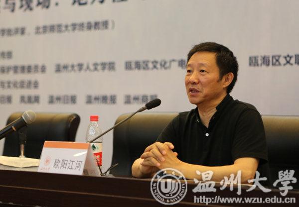 在温州塘河文化论坛上,诗人,诗学批评家、北京师范大学终身教授欧阳江河以亲历者的姿态讲述《当代诗的读写现场:地方性与国际视野》。“现在正是温州杨梅成熟的时节,也是我生平第一次吃到真正意义上的杨梅,前一秒还和大地血脉相通,后一秒就进入了我的身体循环,使我深受感动。这种鲜活的感受,就是现场感,也是我要表达的地方性。”欧阳江河以杨梅为引,将听众带入当代诗的读写现场。