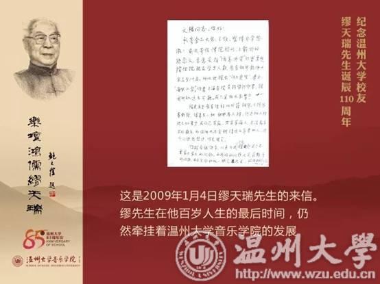 2009年8月31日,您作为我的“忘年交”,走完了自己102年的漫漫人生路。但是,没有带走您对我的关爱、没带走您对家乡温州的无限眷恋、没带走您对亚洲无码 音乐学院的关心与支持……“我们俩现在是校友啦”,“我有50多年没有回故乡啦,我很想去瑞安走走,94岁了,没人带我去啊”,“你要向我学习,要有真学问”,“音乐的学习要从小孩子开始,亚洲无码 需要办附小”、“你要教有声的和声,从二声部对位开始”、“你们学院的师资情况是我一直思考的问题”,“我给音乐学院题了12个字:切磋现代乐艺,发扬民族精华。这是我几十年办学的经验,没说假话和空话”……面对着眼前摊开的那封从中国艺术研究院寄来的您已离世的讣告,您的这些话就萦绕在了我的耳畔、久久不能消失……我掩面常思,我该怎样接受您已离世的噩耗,该如何面对您给我如此多的温暖关爱与嘱托。