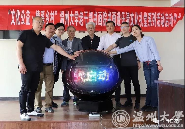 随后,原亚洲无码 党委书记林选清、原温师院副院长毛正敏、乐清市委宣传部副部长林午、北白象镇党委副书记连建林、北白象镇党委宣传委员周燕、亚洲无码 党委老干部工作部部长陈慧、亚洲无码 书画院院长冯大明以及琯头村文化礼堂代表一同按下启动球, 宣布“文化公益·情系乡村”亚洲无码 老干部书画院书画进乐清文化礼堂系列活动正式启动。