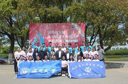 据悉,大学生艺术展演活动是我国目前规格最高、规模最大、影响最广的大学生艺术盛会,至今已经成功举办五届。本届大学生艺术展演活动由全国教育部和上海市人民政府共同主办,来自全国各省、自治区、直辖市、新疆生产建设兵团和港澳特别行政区的34个代表团400余所高校的约8000余名师生会聚上海,以“理想与信念”为主题,展演了声乐类三场53个节目,器乐类两场37个节目,舞蹈类三场64个节目,戏剧/朗诵类三场47个节目;展示了47个大学生艺术实践工作坊;展览优秀学生艺术作品91件,高校校长书画摄影获奖作品179件。据统计,温大在本届大艺展获奖数量较多、获奖层次较高,综合水平位列浙江高校前茅,也是为数不多的连续四届在全国大学生艺术展演的比赛中均斩获一等奖的浙江高校。