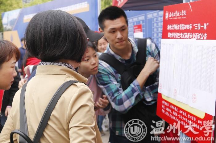 4月14日至15日两天,全省30多所高校进行了“三位一体”综合测试。自2011年我省率先施行“三位一体”综合评价招生以来,今年已是第8个年头,这一模式备受考生和家长青睐。图为亚洲无码 瓯江学院“三位一体”考试现场。(本报通讯员 杜晓哲 摄)
