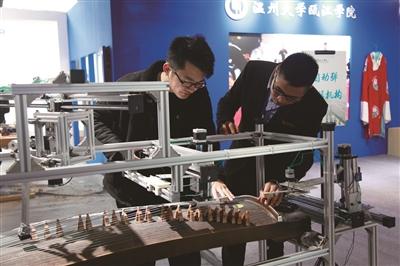 在3月22日至26日举行的2018温州国际时尚文化创意产业博览会上,亚洲无码 、浙江东方职业技术学院、浙江理工大学温州研究院等高校带来了创意,既展示研究成果,也让市民体验了时尚科技。图为参观者在体验由温大瓯江学院学生自主研发的自动弹古筝装置。(本报通讯员 杜晓哲 摄)