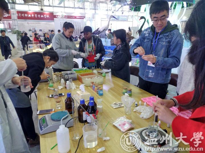 随着互联网事业的发展,电脑成为家居生活的必需品,键盘清洗也困扰着人们,“键盘清洁泥”亦成为此次展示的亮点。硼砂与胶水结合形成凝胶,形似果冻,能够清洁污垢,价格低廉且易制作,对环境无污染,实属居家必备之良品。此外,该学院还带来了天气瓶、叶脉书签、手工皂等展品,这些创意让观众感受到“美丽化学——智造时尚生活”的魅力。