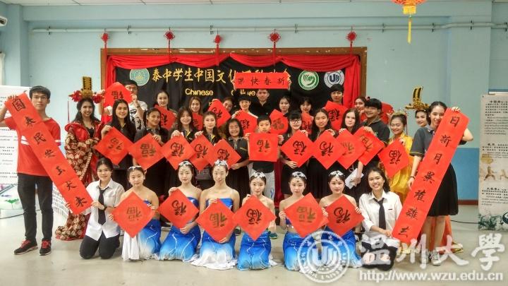 晚会在舞蹈《中国结》拉开序幕,中国民乐合奏《喜洋洋》、武术表演《武魂》更是将晚会气氛推向了高潮,现场掌声不断,欢呼声此起彼伏。舞台一侧,艺术团还有现场书写春联、福字赠送泰国观众。