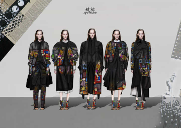 这一作品将中国的传统元素与现代女装相结合,取义渔的朴实与浪漫,诠释悠然恬静的生活态度与自然肆意的生活方式。
