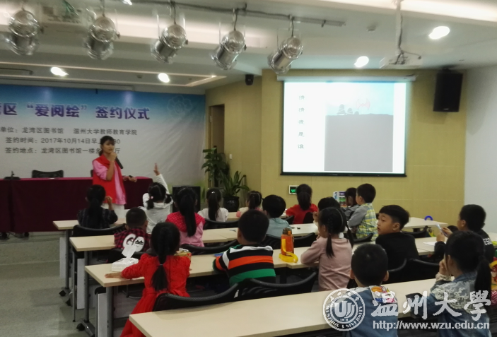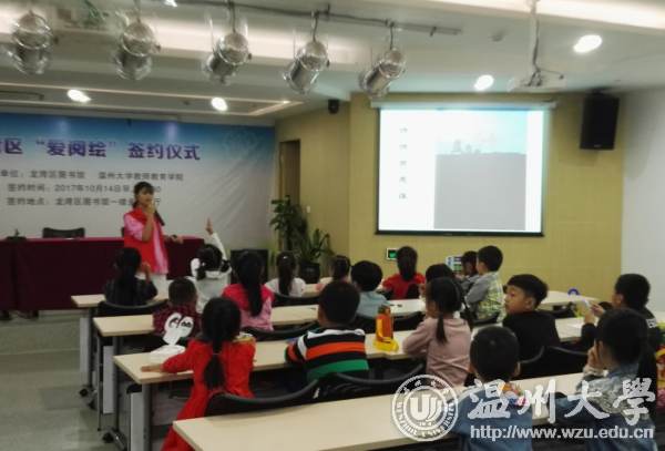 龙湾图书馆馆长陈嘉河表达了对“知心姐姐”志愿者的欢迎和赞赏,介绍了开设“爱阅绘”活动的初衷,希望通过知心姐姐精心安排的系列课程,不仅让孩子们提升阅读能力,并增进动手能力和人际交往。杨丽君副书记对志愿队员提出要求:用责任呵护安全、用专业传播知识、用爱心陪伴成长。同时对活动寄予希望:希望参加活动的少年儿童真正能有所收获、有所提高、有所成长,为梦想插上阅读的翅膀。 现场双方签订合作协议,并举行大学生社会实践基地授牌仪式。随后,“知心姐姐”为孩子们带来了一堂精彩的绘本手工课,主讲人精彩的讲述,用魔法玉米粒做出的五彩小花,紧紧吸引着孩子们的眼球,课堂欢乐而又温馨。 据悉,温大教师教育学院拥有应用心理学、教育技术学、小学教育和学前教育四大专业,“知心姐姐”志愿服务队队员均为来自各专业的学子,他们发挥专业特长,服务社会、服务儿童,风风雨雨走过了22个春秋,至今参加过志愿队的知心姐姐达7000余人,帮扶了近70000名青少年儿童,获得过“浙江美德学子”等20余项荣誉。