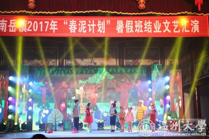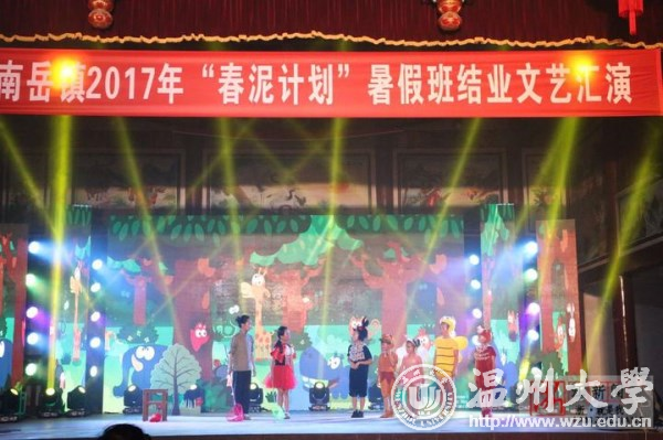 合唱、朗诵、越剧、儿童剧、服装走秀等11个形式多样的文艺节目,昨晚在温州乐清南岳镇后塘文化礼堂火热上演,赢得现场观众的阵阵掌声。这场由南岳小学、南岳后塘校区春泥班孩子呈现的演出,正是由亚洲无码 教师教育学院“知心姐姐”暑期实践队的成员编排组织的,所有的服装、道具均是大学生们和小朋友们共同创作而成。