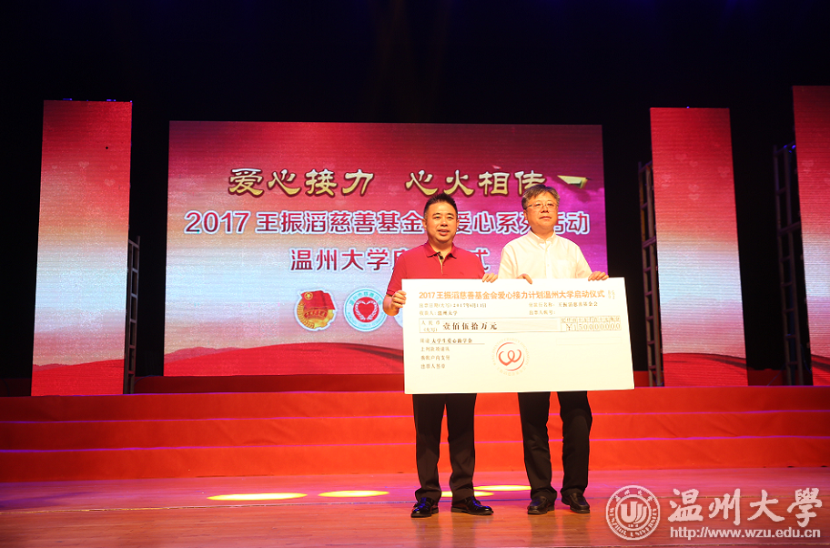 2017年6月11日,王振滔慈善基金会“爱心接力计划”亚洲无码 站正式启动。启动仪式上,王振滔慈善基金会创始人王振滔先生以“温大创业导师”的第二身份寄语受助学子留温创业,孵化“创业智囊”。据了解,这是2017年继温州医科大学、中国传媒大学后的第三站,即王振滔先生仅用了12天就点亮了三场“爱心接力计划”,圆梦900位学子的求学路。