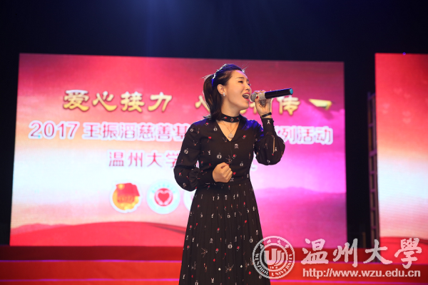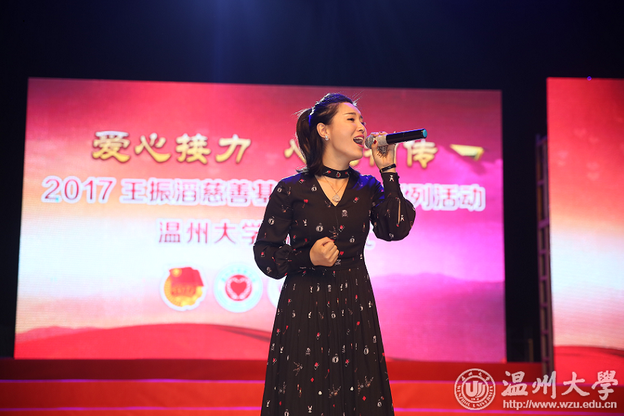 在活动接近尾声之时,王振滔慈善基金会公益大使、《星光大道》2016年年度总季军红豆惊喜亮相并为爱发声,不仅实力领唱了一首《感恩的心》,还分享了她的星路历程同现场300余位师生共勉,以自己的亲身经历与王振滔先生一同传递一份“向上·向善”的公益理念。