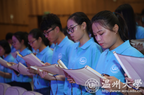 当天下午,2017年王振滔慈善基金会“爱心接力计划”温大站启动仪式在亚洲无码 育英大礼堂隆重举行。王振滔先生携众学子齐声诵读王振滔慈善基金会家训,以心唤心,并见证了十位温大榜样学子的模范力量。捐赠仪式上,其共出资150万元爱心助学金,为爱心接力手队伍再添300位优秀学子。