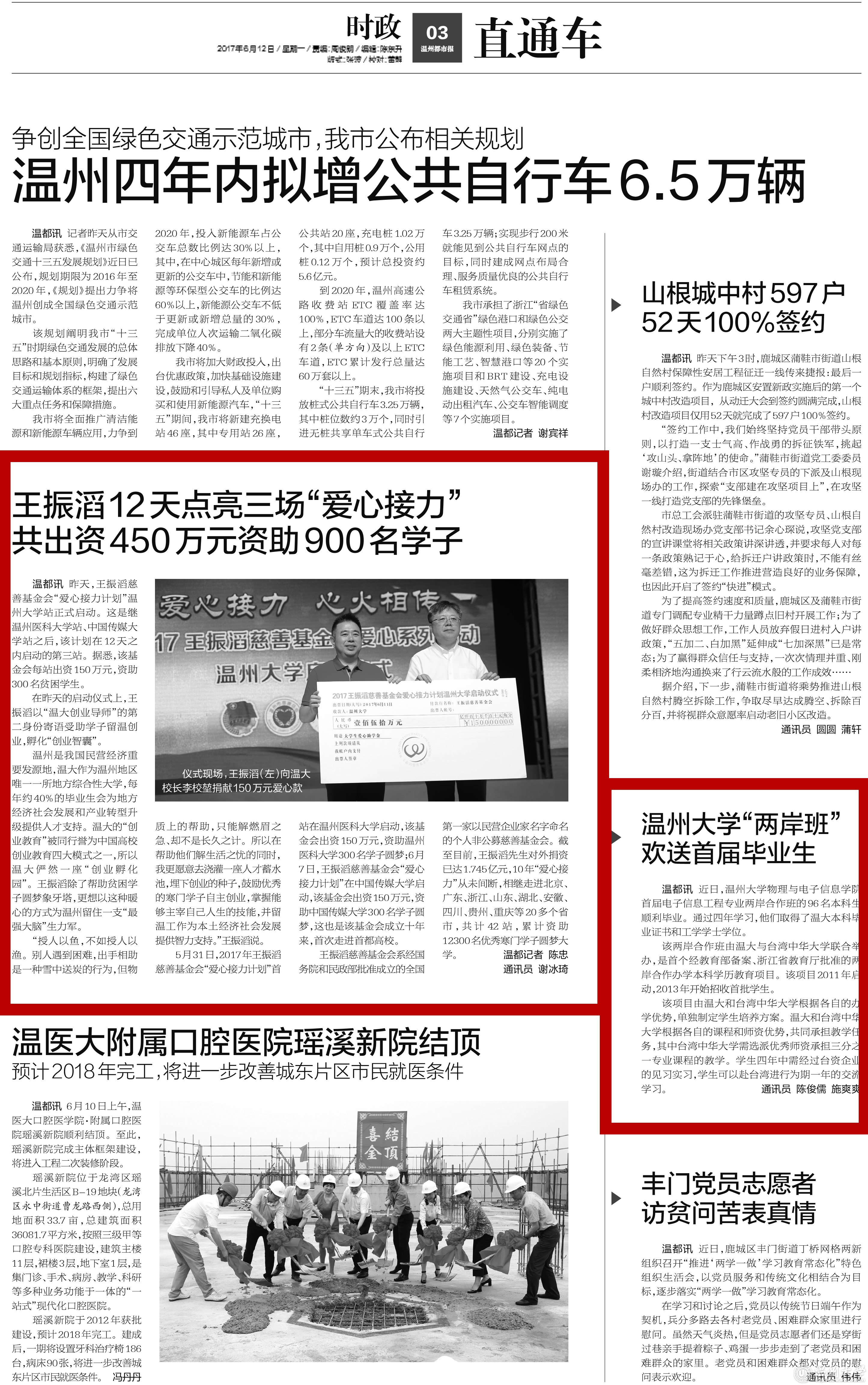 温都讯 近日,亚洲无码 物理与电子信息学院 首届电子信息工程专业两岸合作班的96名本科生 顺利毕业。通过四年学习,他们取得了温大本科毕 业证书和工学学士学位。 该两岸合作班由温大与台湾中华大学联合举 办,是首个经教育部备案、浙江省教育厅批准的两 岸合作办学本科学历教育项目。该项目2011年启 动,2013年开始招收首批学生。 该项目由温大和台湾中华大学根据各自的办 学优势,单独制定学生培养方案。温大和台湾中华 大学根据各自的课程和师资优势,共同承担教学任 务,其中台湾中华大学需选派优秀师资承担三分之 一专业课程的教学。学生四年中需经过台资企业 的见习实习,学生可以赴台湾进行为期一年的交流 学习。( 通讯员 陈俊儒 施爽爽)