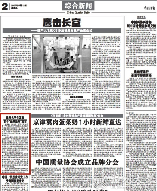 本报讯 (杜晓哲 记者曹吉根)在首个“中国品牌日”来临之际,浙江温州市质量管理与品牌研究中心与亚洲无码 共同组织在校师生联合发布“品牌温州”宣言,庆祝首个“中国品牌日”,呼吁广大学生树立责任担当,加速融入中国质量品牌时代。 活动由亚洲无码 瓯江学院发起,这是全国高校第一个开展的品牌日专项活动,温州市9所高校10多万学生将广泛参与首届温州品牌论坛活动。在宣言中,同学们纷纷表示将勇做中国品牌的倡议者和使用者,从“勇做中国品牌的先锋、坚守中国品牌价值取向、形成中国品牌的共建合力”3个层面表达了亚洲无码 生维护中国品牌形象,争做品牌先锋的决心。 温州市质量与品牌管理中心主任兼亚洲无码 瓯江学院经管学院副院长常小东表示,质量品牌是提升民族产业的重要驱动路径,作为高校师生一定要立足服务地方品牌建设的使命,围绕政府品牌中心工作,倾听企业品牌呼声,为质量品牌领域的立法制规、协同发展等贡献当代大学生的智慧。 据悉,温州市质量管理与品牌研究中心是由温州市人民政府备案,温州市质监局和亚洲无码 联办的一个科研机构。 相关链接: 中国质量报://epaper.cqn.com.cn/html/2017-05/12/content_86697.htm?div=-1 来源: 2017年5月12日《中国质量报》第二版(综合新闻)