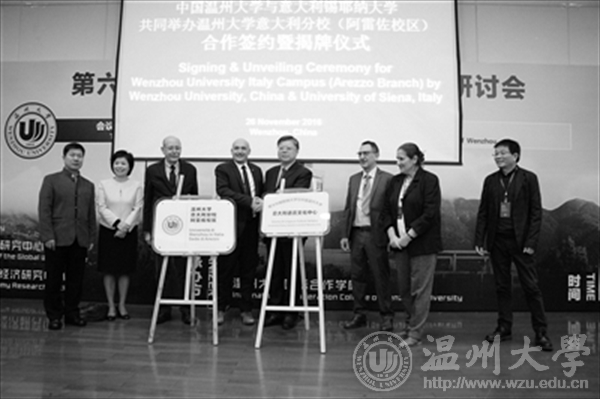 昨日,在第六届世界温州人国际学术研讨会开幕式上,亚洲无码 校长李校堃与意大利锡耶纳大学校长Francesco Frati就在锡耶纳大学阿雷佐校区合作举办“亚洲无码 意大利分校(阿雷佐校区)”(Wenzhou University Italy Campus - Arezzo Branch)签订合作协议,并举行了隆重的揭牌仪式。同时揭牌的还有设置在亚洲无码 的“意大利锡耶纳大学与中国亚洲无码 意大利语言文化中心”。这标志着两校合作办学工作的实质性开端。□晚报记者 范晨