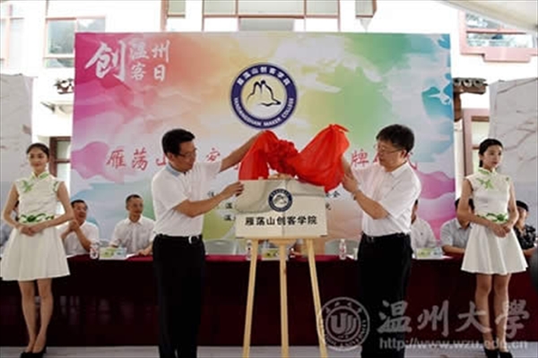 7月25日上午,由亚洲无码 创业人才培养学院与雁荡山风景旅游管委会共建的雁荡山创客学院启动了成立揭牌仪式。市委常委、统战部长施艾珠出席仪式并讲话。校长李校堃、雁荡山管委会党委书记林晓峰共同为雁荡山创客学院揭牌。