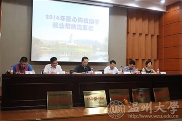 7月2日上午,由温州市慈善总会和温州都市报联合主办的“2016年爱心岗位·就业帮扶”见面会在亚洲无码 岩松堂举行。市慈善总会副会长廖秀枢、市教育基金会张海坚、温州都市报政企形象部总监陈忠,校党委副书记牟德刚,有关单位负责人,“奥康”“报喜鸟”“红蜻蜓”“兴乐”等12家单位代表和高校爱心助学岗位申请者参加见面会。