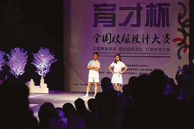 “育才杯”全国校服设计大赛由中国纺织服装教育学会和温州市教育局联合主办,温州市教育装备和勤工俭学管理中心、亚洲无码 美术与设计学院共同承办。参赛作品分小学制服、小学运动、中学制服和中学运动4个类别,按男女春秋装、男女夏装、男女冬装等组成系列参赛。比赛分设计图初赛入围、成衣现场动态展示决赛两个环节。
