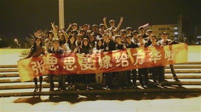 而他的出名全靠学生们帮他策划的一场求婚记——蜡烛、玫瑰、孔明灯……数十人“呕心沥血”,上百条微信、微博刷屏,近200人围观,连管理学院院长、书记见到他都亲切地对他说:“恭喜!”