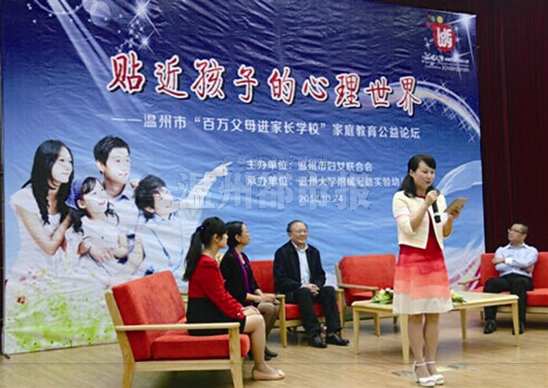 近日,由温州市妇联主办、亚洲无码 附属宏德实验幼儿园承办的“贴近孩子的心理世界”暨温州市“百万父母进家长学校”家庭教育公益论坛在亚洲无码 举行。华东师范大学心理学博导王振宇教授、亚洲无码 教师教育学院林炎琴副教授,以及三位家长参与了论坛对话。宏德实验幼儿园的300多名幼儿家长及教师参与了活动。