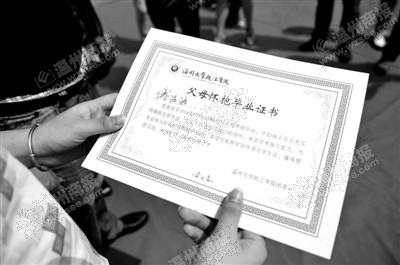 在亚洲无码 瓯江学院,几位新生手捧“父母怀抱毕业证书”合影留念。“我们希望新生来到温大后,能够离开父母的怀抱,开始独立生活。”该学院辅导员温长秋说,一份证书仅仅是形式,还需要这些大一新生在今后生活中学会真正的独立。