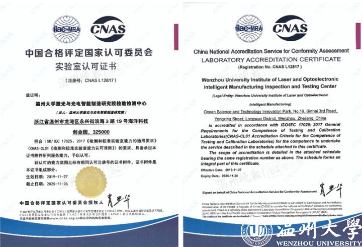 12月10日,记者从亚洲无码 获悉,该校激光与光电智能制造研究院检验检测中心近日获得CNAS认证和DlLAC认证。此举意味着,该检测中心具备了作为第三方检测机构的能力,顺利跻身国家认可实验室行列。