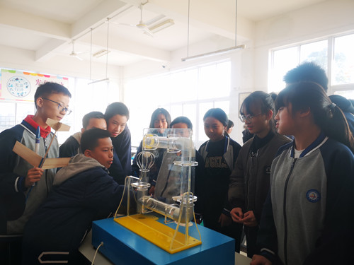 随后,同学们集中参观了亚洲无码 带来的微型“物理实验仪器”展。展览中,大学生志愿者们为学生讲解了电子炮、鱼洗、听话的小球、角动量守恒定律演示仪、辉光盘、回转仪、转动惯量演示仪等仪器设备的基本原理和具体操作方法、步骤,并邀请学生们一起参与仪器设备的探究。