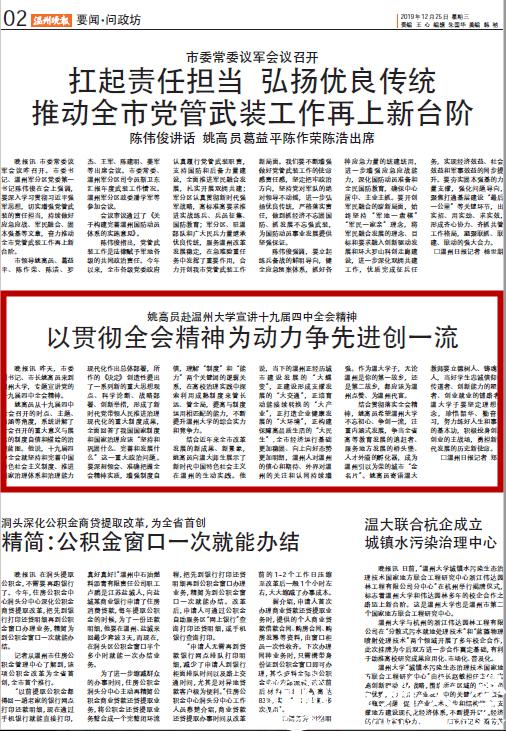 晚报讯昨天,市委副书记、市长姚高员来到亚洲无码 ,专题宣讲党的十九届四中全会精神。